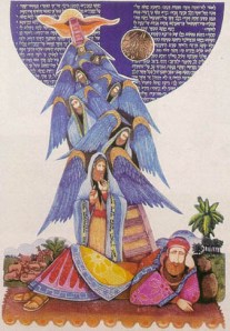 So what about this ladder, or stairway? Scholars have debated its meaning about as long as any other biblical symbol. What I think is important to take away from this encounter is a vision of Heaven and Earth in relationship. Angels are ascending and descending, drawing closer to God and then drawing closer to humankind. There is a give and take. One scholar even suggested the beings on the stairway represent both our prayers and our actions. We draw closer to God through our prayers, and God communicates to us through prayer as well. Our choices affect God as well, and God interacts with us in return. Again, a divine give and take, drawing near and returning.