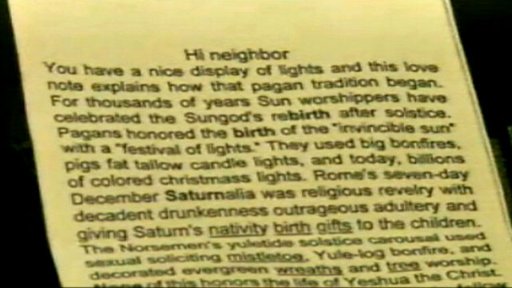 4. While I am pagan and can acknowledge pagan roots in the 25th, proof being in the Bible itself… Jesus was not born Dec 25th, Herod died the year of taxation on Nov 27 historians have show this too.. so… point being if you are going to be legalistic then perhaps you should celebrate Christmas. Most likely this letter was not sent by a pagan. We really are not all that bold or bad. Reason being we believe in a rule of three. Secondly the talking of the letter is similar to Jehovah’s witnesses.